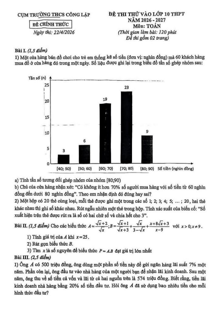 Giải Toán đề thi thử vào lớp 10 môn toán năm 2026 – 2027 cụm thcs công lập – hà nội với Đáp Án Mới Nhất