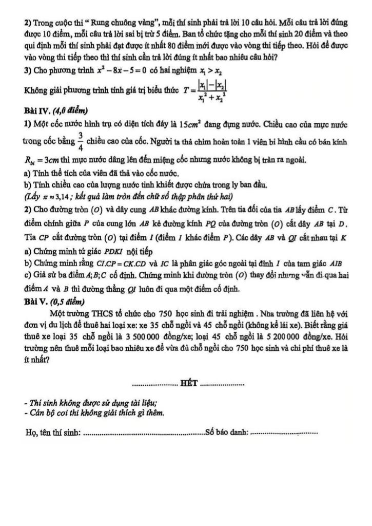 - Trình bày lời giải rõ ràng và khoa học.