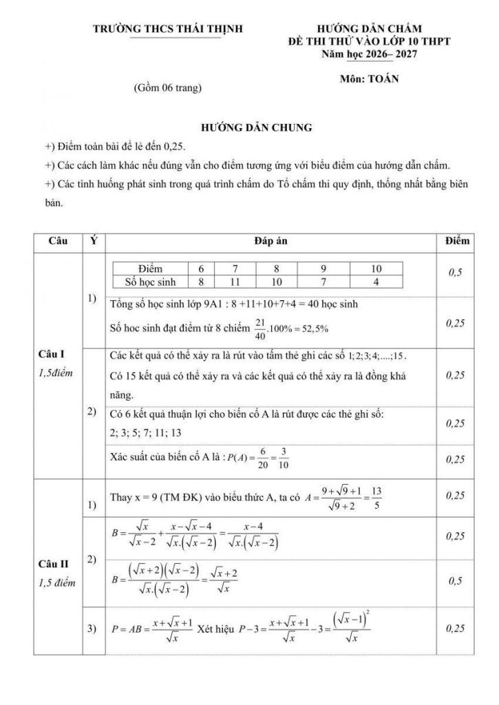 Giải Toán đề thi thử vào lớp 10 môn toán năm 2026 – 2027 trường thcs thái thịnh – hà nội với Đáp Án Mới Nhất
