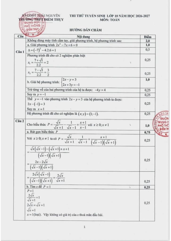 Toán học luôn là một môn học quan trọng, giúp học sinh phát triển tư duy logic và kỹ năng giải quyết vấn đề. Để hỗ trợ các bạn học sinh và giáo viên trong việc học tập và giảng dạy, bài viết này sẽ cung cấp lời giải chi tiết và đáp án chính xác cho chủ đề đề thi thử vào lớp 10 môn toán năm 2026 – 2027 trường thpt điềm thụy – thái nguyên, giúp bạn hiểu sâu và tự tin hơn khi làm bài tập.
