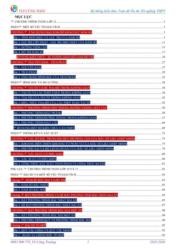 CHƯƠNG TRÌNH TOÁN LỚP 12 3.