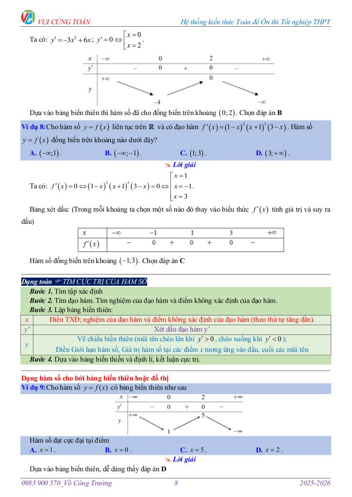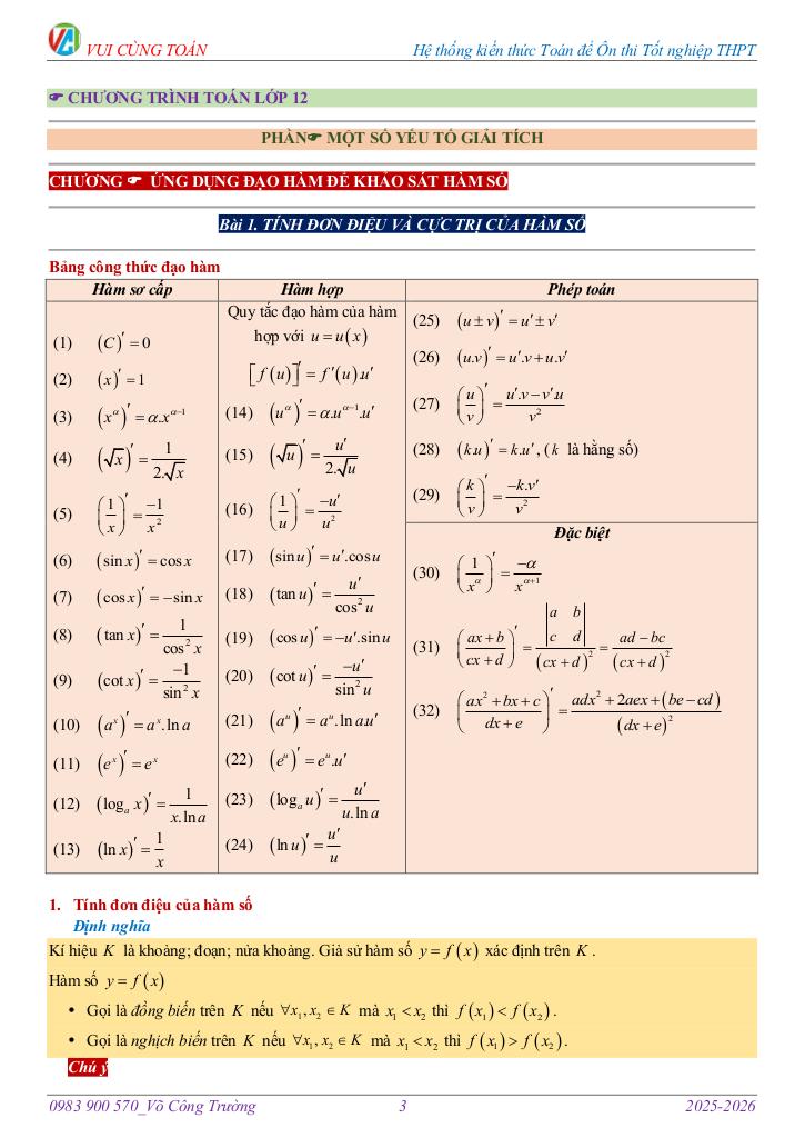 Bài 1. TÍNH ĐƠN ĐIỆU VÀ CỰC TRỊ CỦA HÀM SỐ 3.