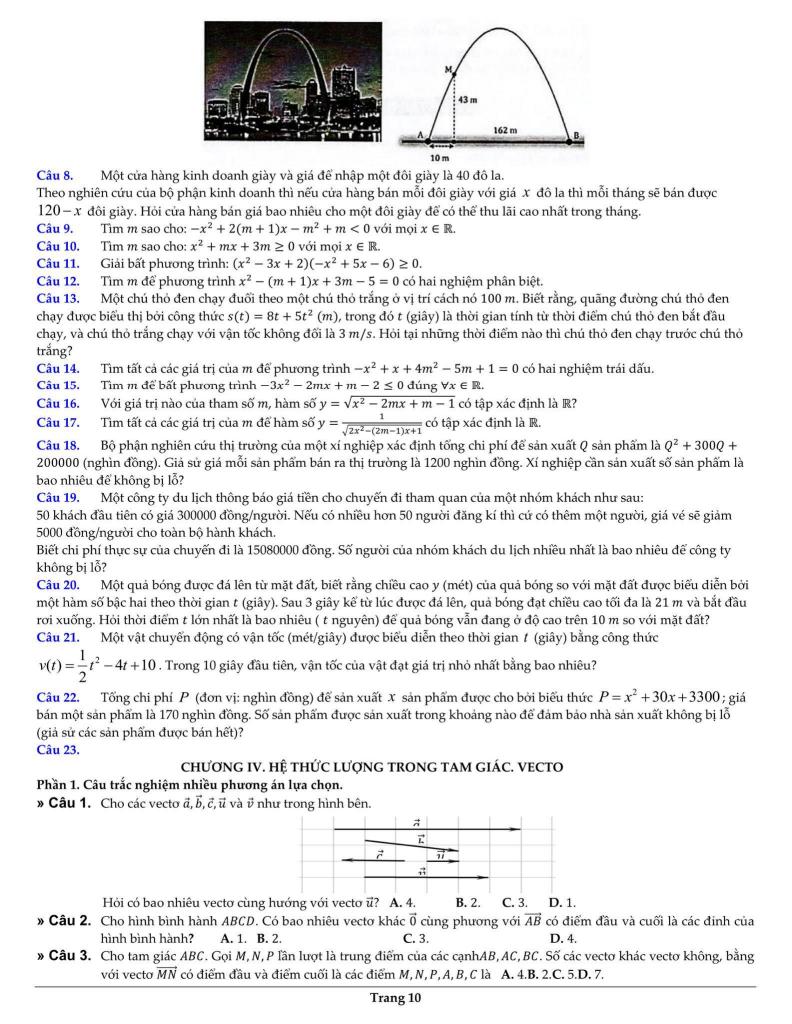 CHƯƠNG IV. HỆ THỨC LƯỢNG TRONG TAM GIÁC. VECTƠ.