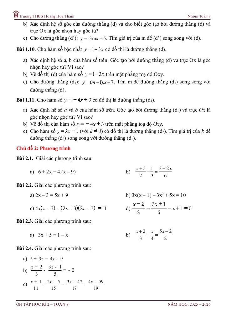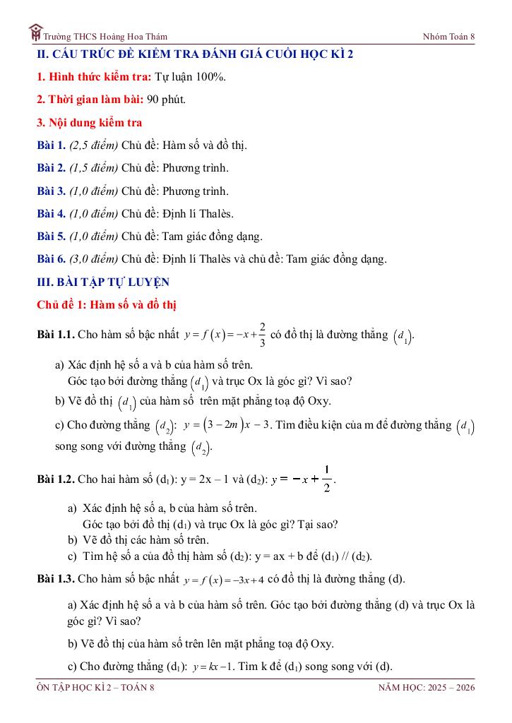 ôn tập cuối học kì 2 toán 8 năm 2025 – 2026 trường thcs hoàng hoa thám – tp hcm là một trong những phần kiến thức quan trọng trong chương trình toán học, thường xuất hiện trong các bài kiểm tra và kỳ thi lớn. Việc nắm vững phần này không chỉ giúp bạn đạt điểm cao mà còn tạo nền tảng vững chắc để học các nội dung nâng cao hơn.