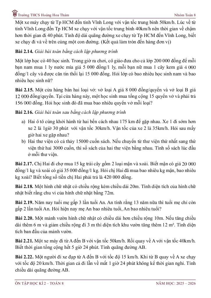 Toán học luôn là một môn học quan trọng, giúp học sinh phát triển tư duy logic và kỹ năng giải quyết vấn đề. Để hỗ trợ các bạn học sinh và giáo viên trong việc học tập và giảng dạy, bài viết này sẽ cung cấp lời giải chi tiết và đáp án chính xác cho chủ đề ôn tập cuối học kì 2 toán 8 năm 2025 – 2026 trường thcs hoàng hoa thám – tp hcm, giúp bạn hiểu sâu và tự tin hơn khi làm bài tập.