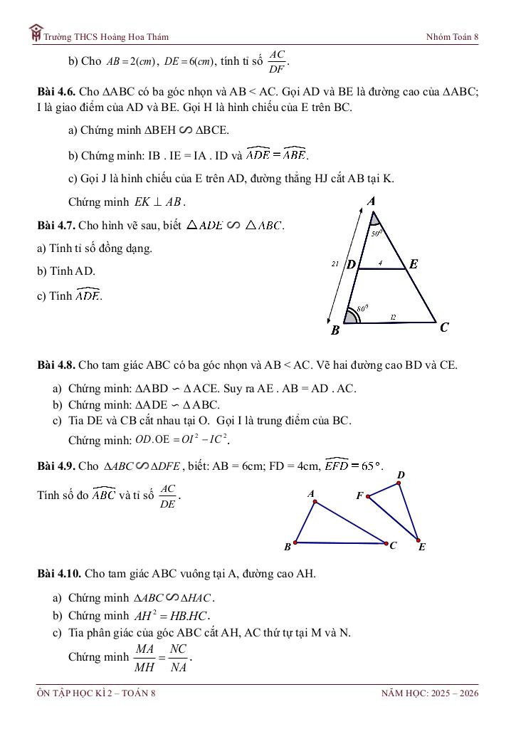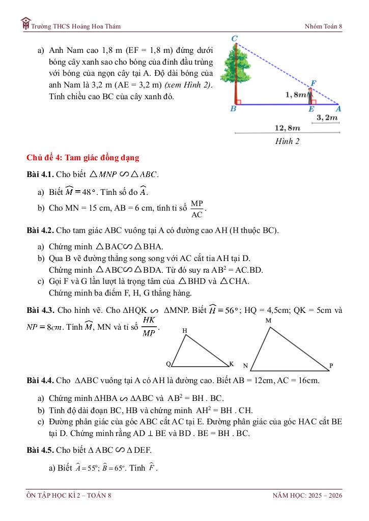 4. Chủ đề: Tam giác đồng dạng.