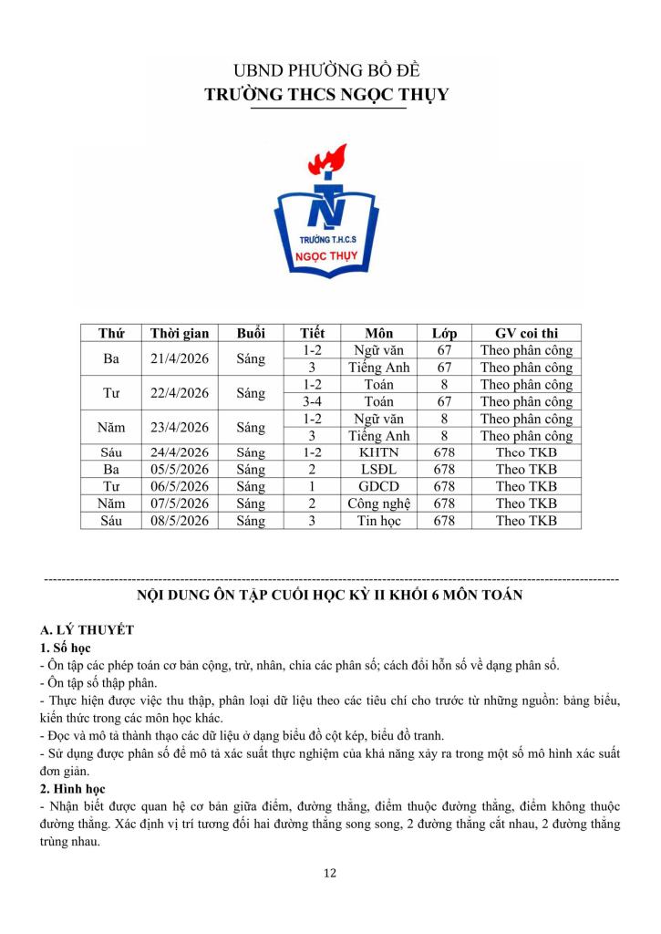 giaitoan.edu.vn giới thiệu đến quý thầy, cô giáo và các em học sinh đề cương hướng dẫn nội dung ôn tập cuối học kỳ 2 môn Toán 6 năm học 2025 – 2026 trường THCS Ngọc Thụy, phường Bồ Đề, thành phố Hà Nội.