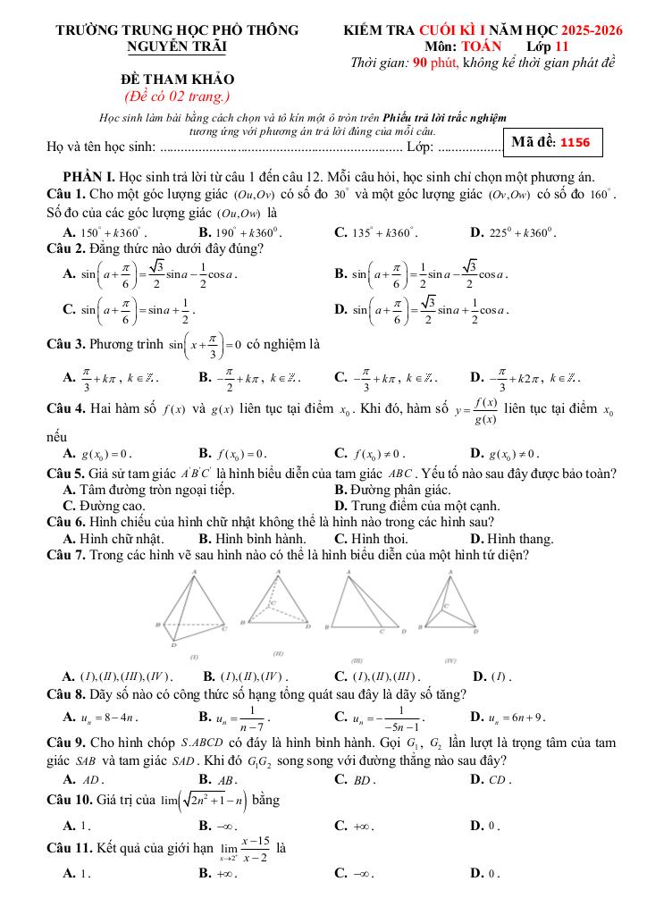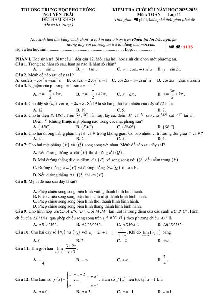 Toán học luôn là một môn học quan trọng, giúp học sinh phát triển tư duy logic và kỹ năng giải quyết vấn đề. Để hỗ trợ các bạn học sinh và giáo viên trong việc học tập và giảng dạy, bài viết này sẽ cung cấp lời giải chi tiết và đáp án chính xác cho chủ đề ôn tập cuối kì 1 toán 11 năm 2025 – 2026 trường thpt nguyễn trãi – đà nẵng, giúp bạn hiểu sâu và tự tin hơn khi làm bài tập.