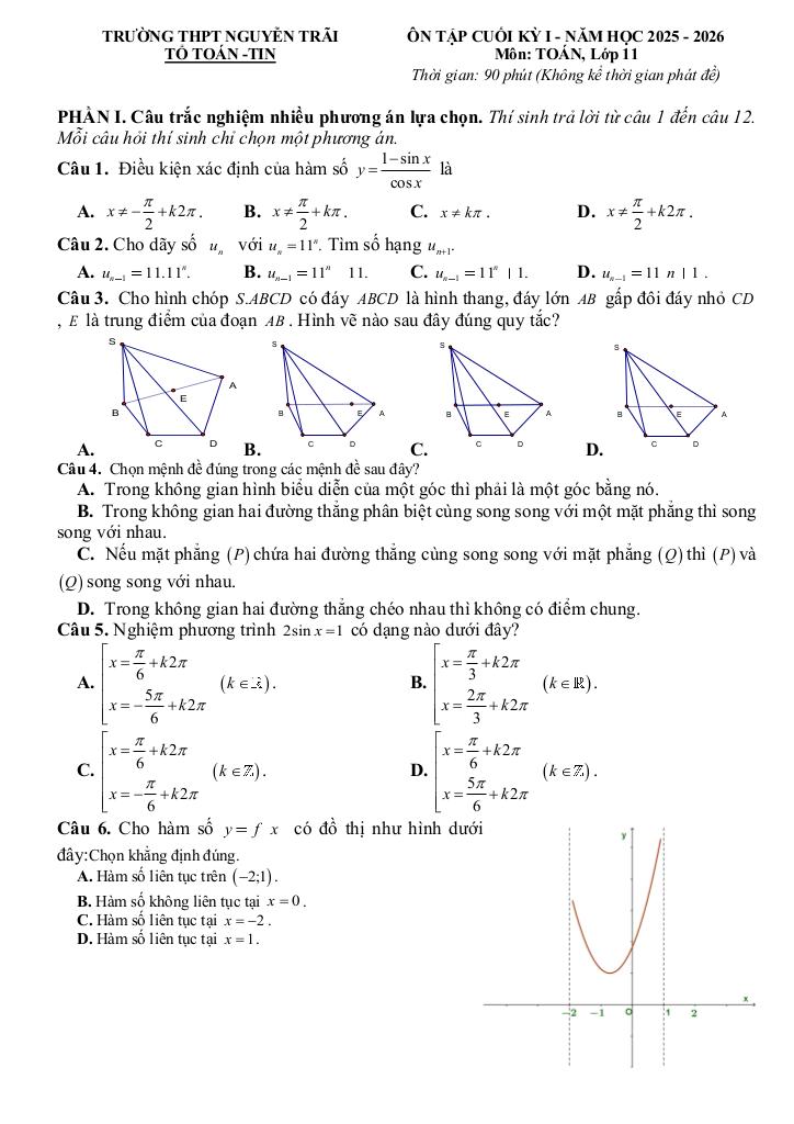 Giải Toán ôn tập cuối kì 1 toán 11 năm 2025 – 2026 trường thpt nguyễn trãi – đà nẵng với Đáp Án Mới Nhất