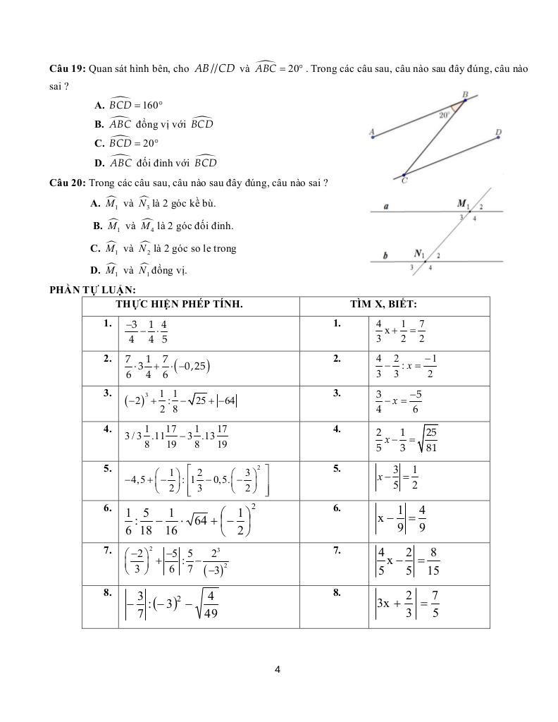 2. Các Bài Tập Đặc Trưng trong ôn tập cuối kì 1 toán 7 năm 2025 – 2026 trường thcs trần văn ơn – tp hcm