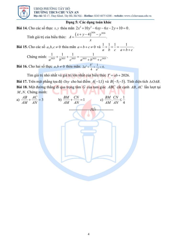 Chủ đề ôn tập giữa học kì 2 toán 8 năm 2025 – 2026 trường thcs chu văn an – hà nội là một phần kiến thức thú vị và hữu ích trong toán học. Hãy sử dụng bài viết này như một công cụ hỗ trợ để bạn chinh phục mọi thử thách trong môn Toán. Đừng quên ôn tập thường xuyên và luyện tập nhiều dạng bài tập khác nhau để thành thạo hơn!