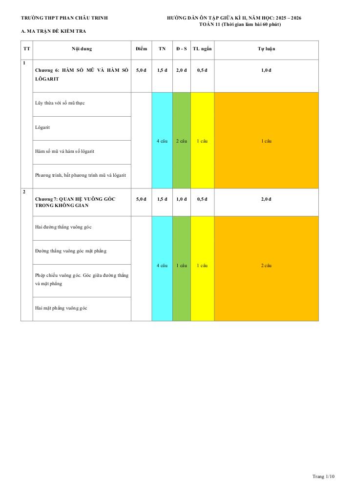 giaitoan.edu.vn giới thiệu đến quý thầy, cô giáo và các em học sinh đề cương hướng dẫn ôn tập giữa học kì 2 môn Toán 11 năm học 2025 – 2026 trường THPT Phan Châu Trinh, thành phố Đà Nẵng.