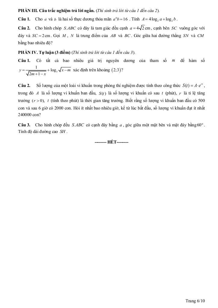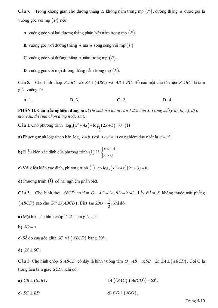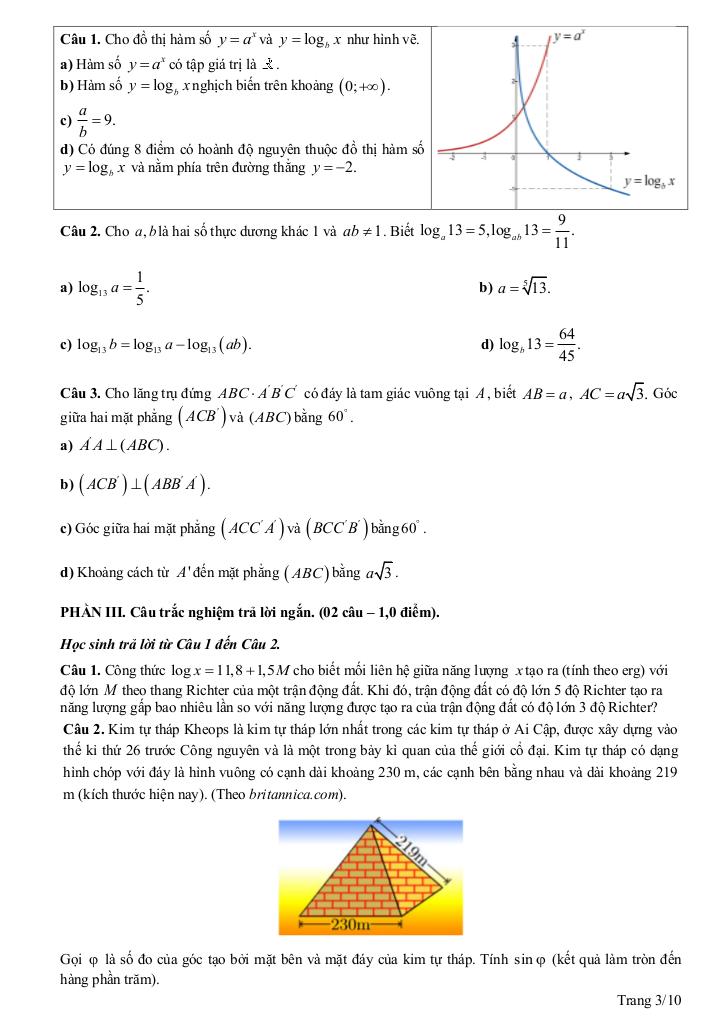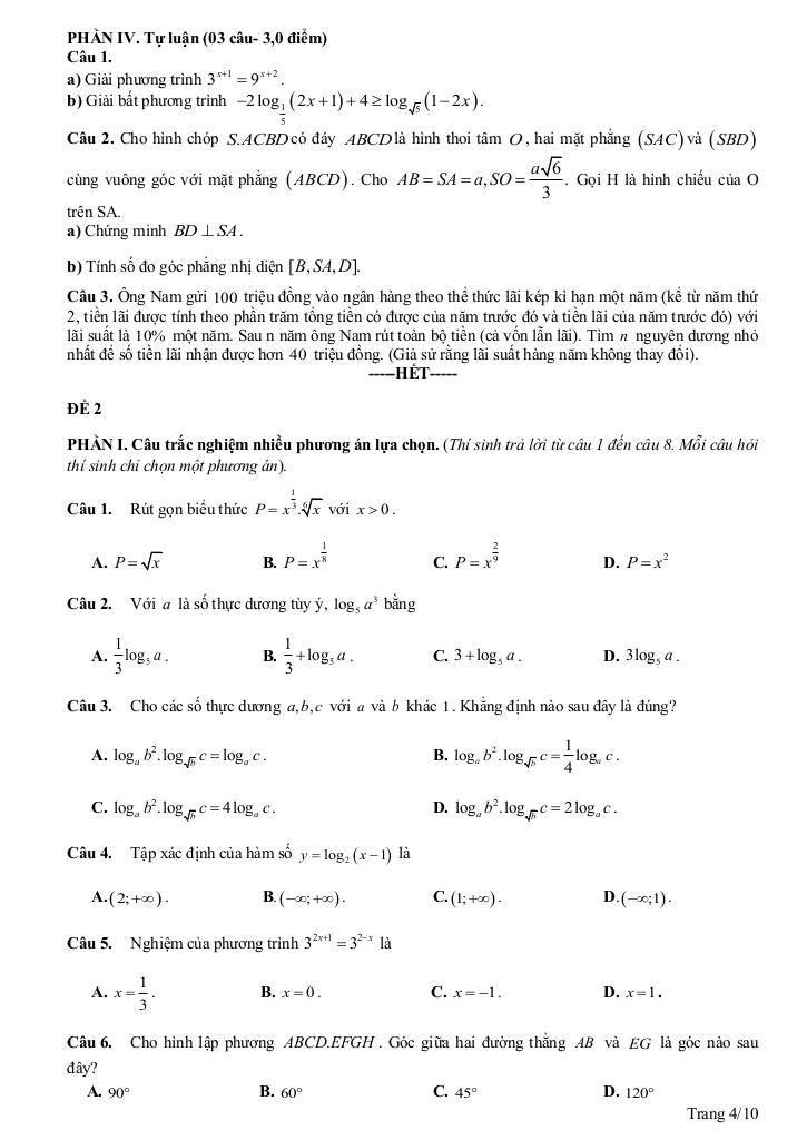 + Phương trình, bất phương trình mũ và lôgarit.