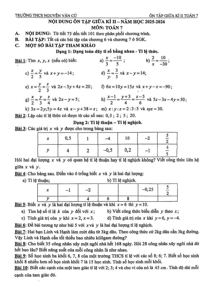 Toán học luôn là một môn học quan trọng, giúp học sinh phát triển tư duy logic và kỹ năng giải quyết vấn đề. Để hỗ trợ các bạn học sinh và giáo viên trong việc học tập và giảng dạy, bài viết này sẽ cung cấp lời giải chi tiết và đáp án chính xác cho chủ đề ôn tập giữa kì 2 toán 7 năm 2025 – 2026 trường thcs nguyễn văn cừ – đà nẵng, giúp bạn hiểu sâu và tự tin hơn khi làm bài tập.