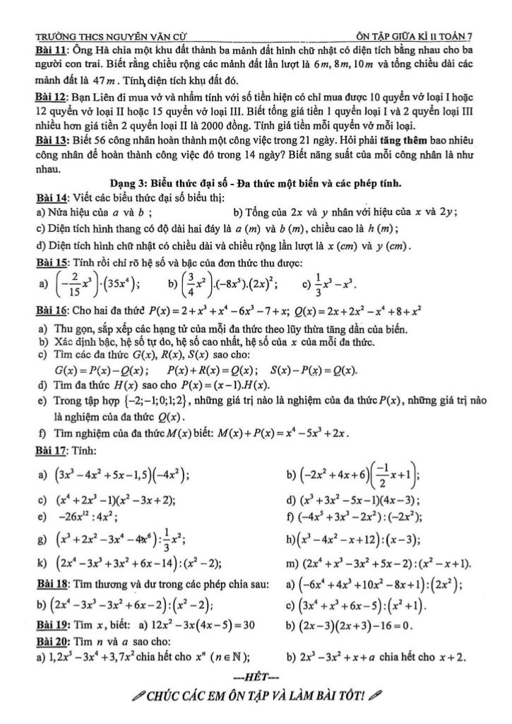 ôn tập giữa kì 2 toán 7 năm 2025 – 2026 trường thcs nguyễn văn cừ – đà nẵng là một trong những phần kiến thức quan trọng trong chương trình toán học, thường xuất hiện trong các bài kiểm tra và kỳ thi lớn. Việc nắm vững phần này không chỉ giúp bạn đạt điểm cao mà còn tạo nền tảng vững chắc để học các nội dung nâng cao hơn.