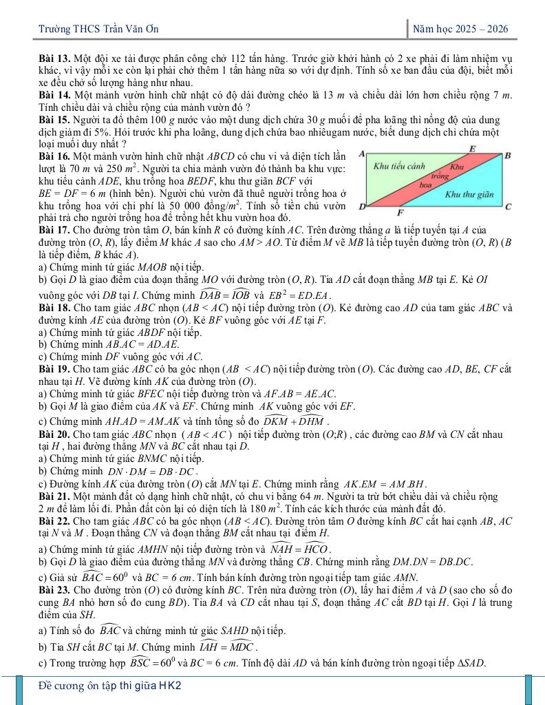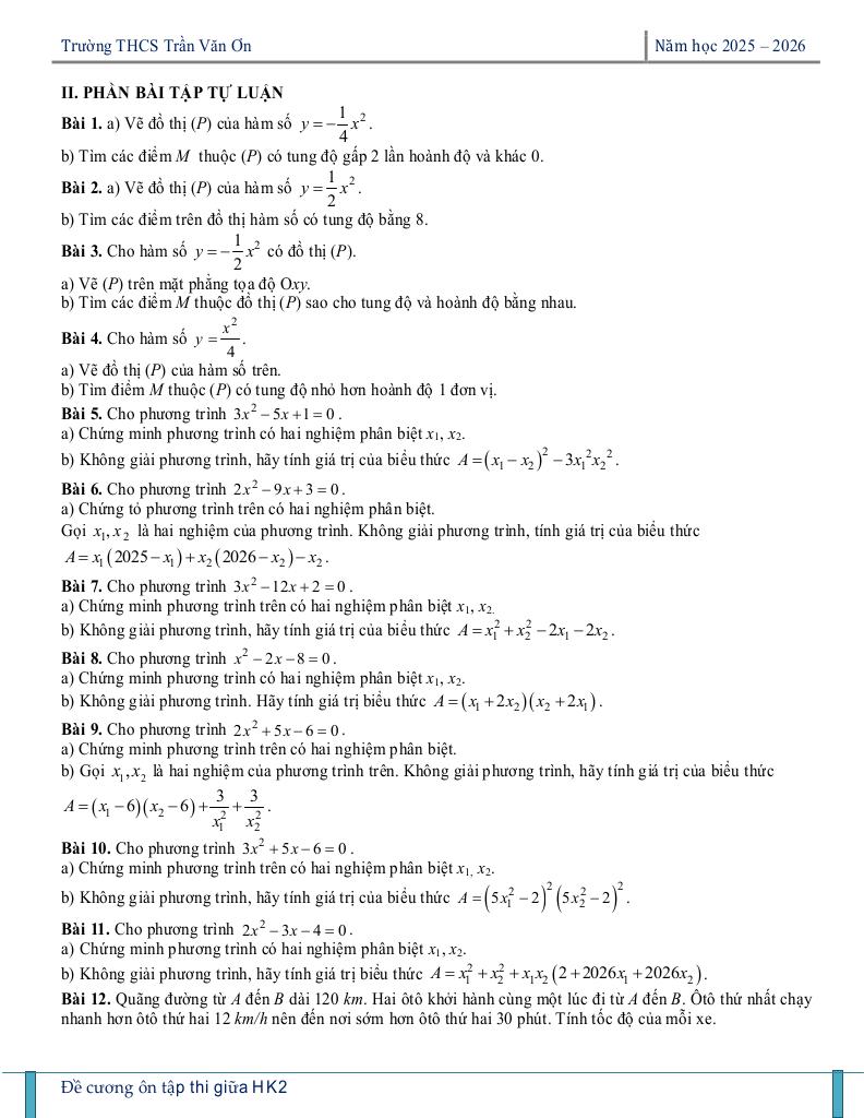 Toán học luôn là một môn học quan trọng, giúp học sinh phát triển tư duy logic và kỹ năng giải quyết vấn đề. Để hỗ trợ các bạn học sinh và giáo viên trong việc học tập và giảng dạy, bài viết này sẽ cung cấp lời giải chi tiết và đáp án chính xác cho chủ đề ôn tập giữa kì 2 toán 9 năm 2025 – 2026 trường thcs trần văn ơn – tp hcm, giúp bạn hiểu sâu và tự tin hơn khi làm bài tập.