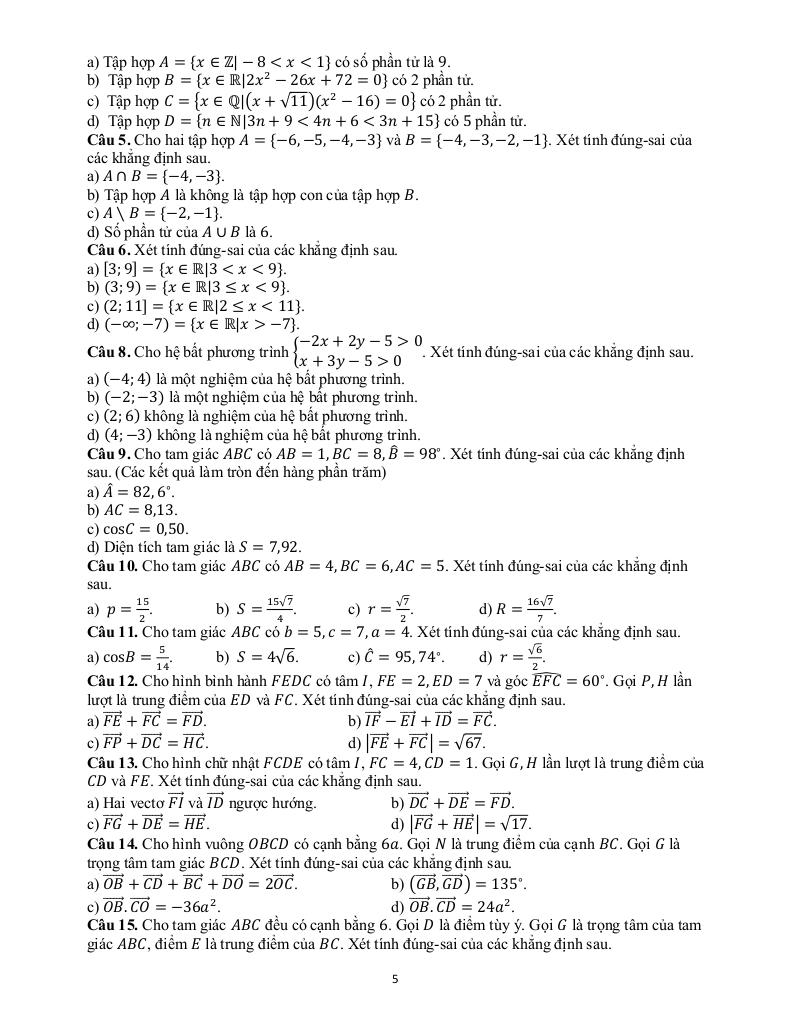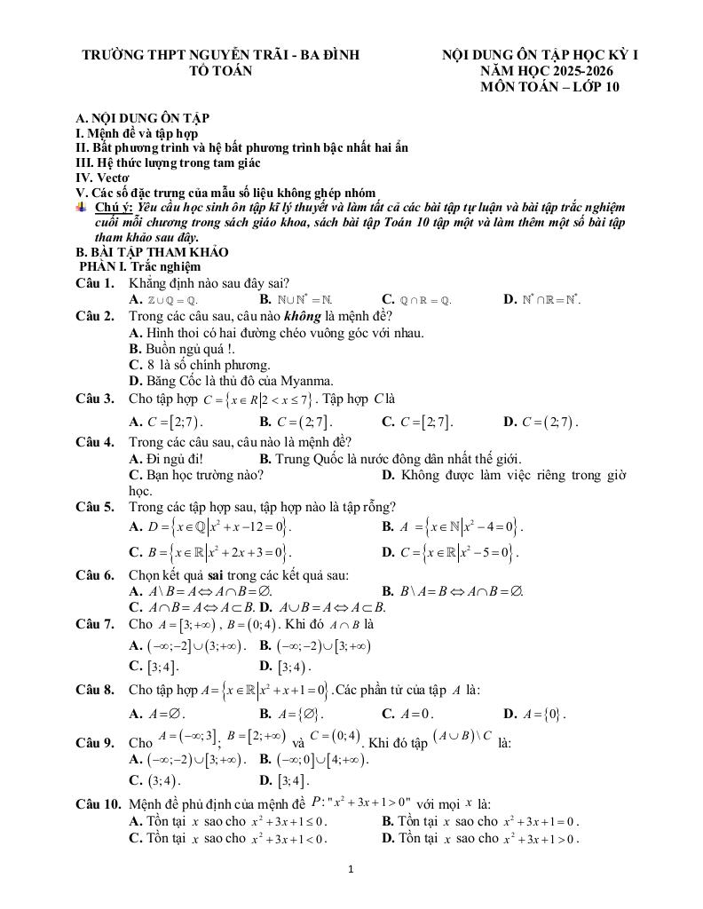Giải Toán ôn tập học kỳ 1 toán 10 năm 2025 – 2026 trường thpt nguyễn trãi – hà nội với Đáp Án Mới Nhất