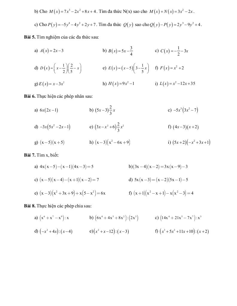 – Cộng, trừ, nhân, chia đa thức một biến.