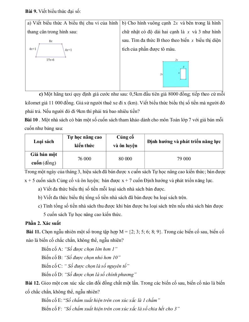 – Biểu thức đại số và đa thức một biến.