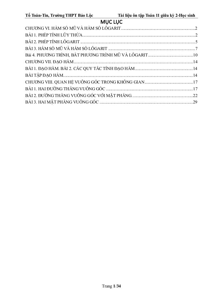 ôn tập toán 11 giữa kỳ 2 năm 2025 – 2026 trường thpt bảo lộc – lâm đồng là một trong những phần kiến thức quan trọng trong chương trình toán học, thường xuất hiện trong các bài kiểm tra và kỳ thi lớn. Việc nắm vững phần này không chỉ giúp bạn đạt điểm cao mà còn tạo nền tảng vững chắc để học các nội dung nâng cao hơn.