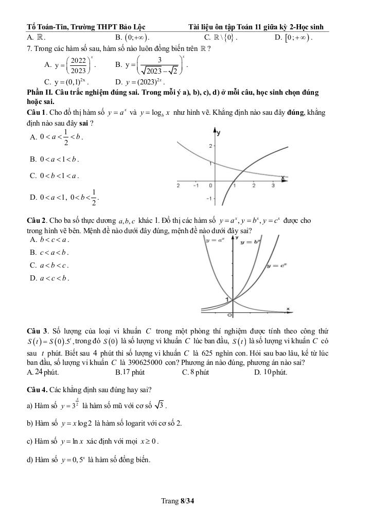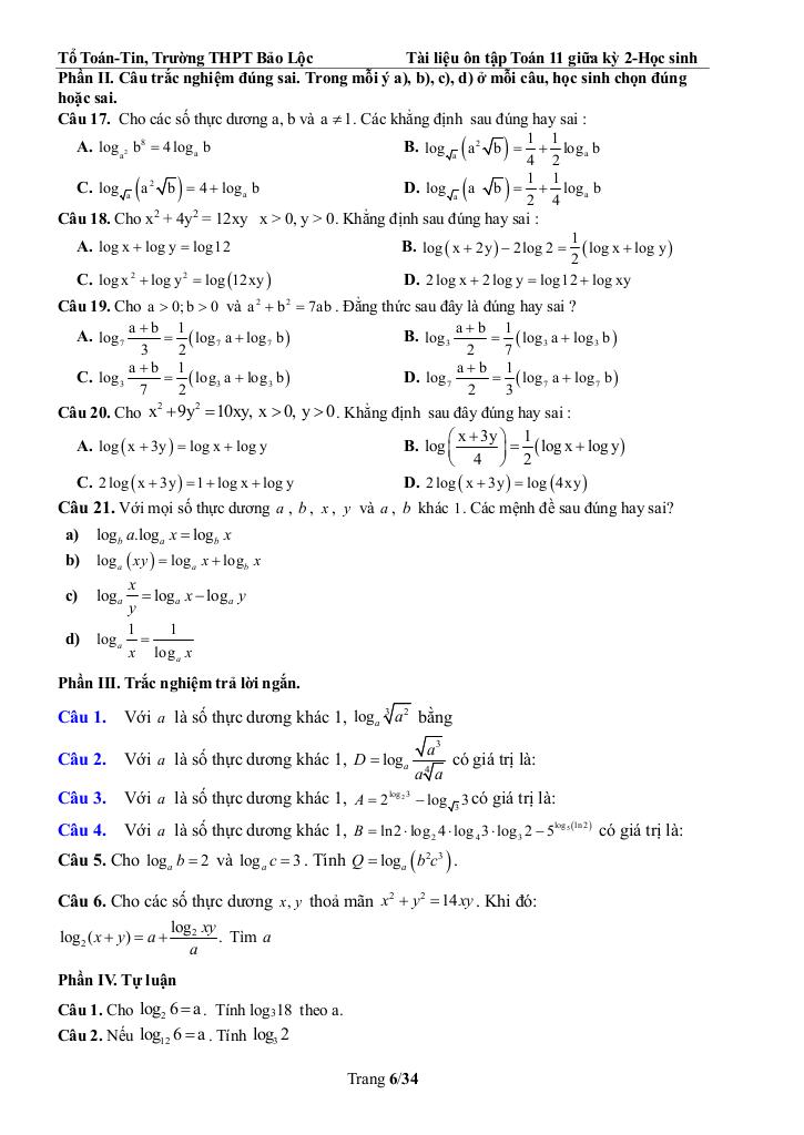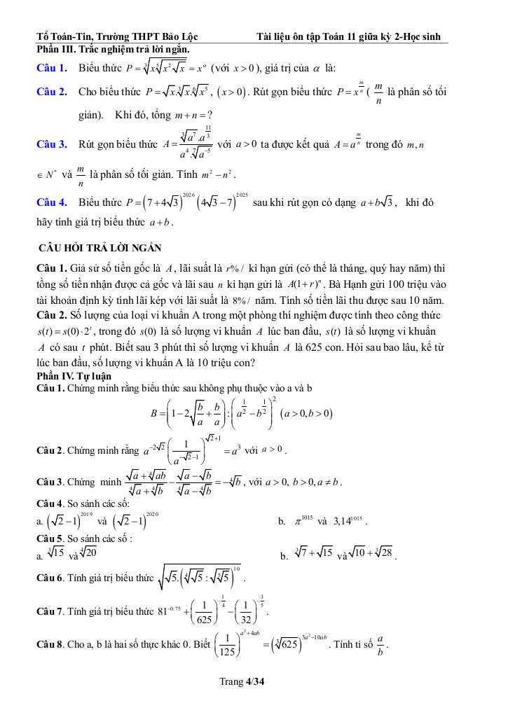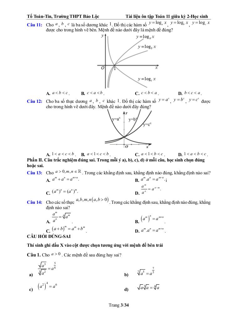 Giải Toán ôn tập toán 11 giữa kỳ 2 năm 2025 – 2026 trường thpt bảo lộc – lâm đồng với Đáp Án Mới Nhất