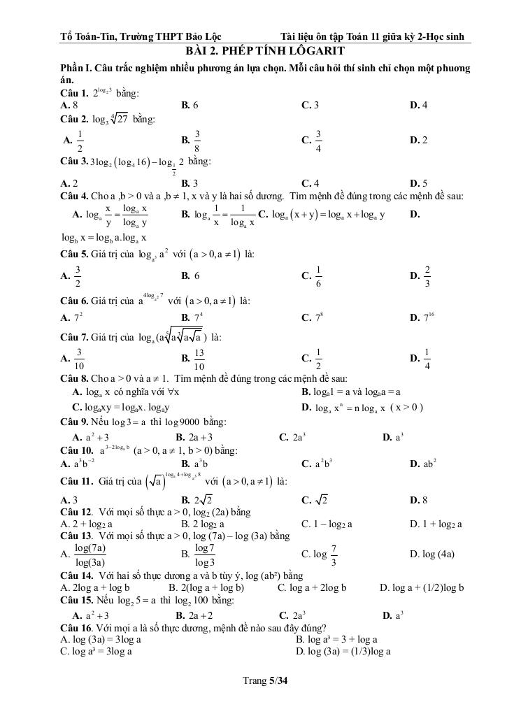 Bài 2. Phép tính lôgarit 5.