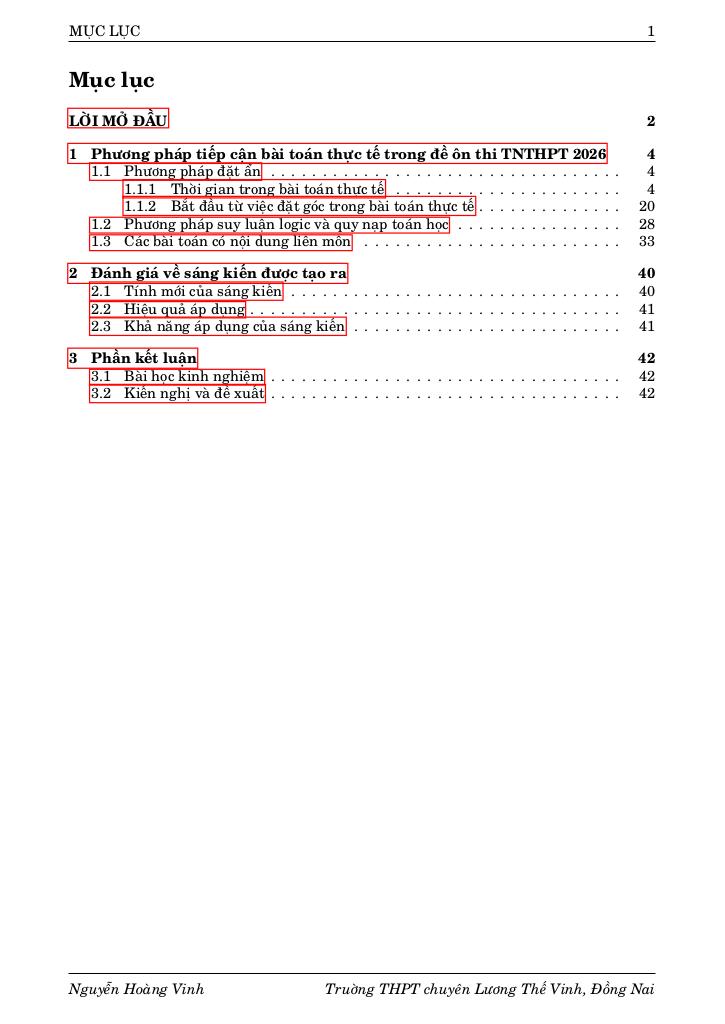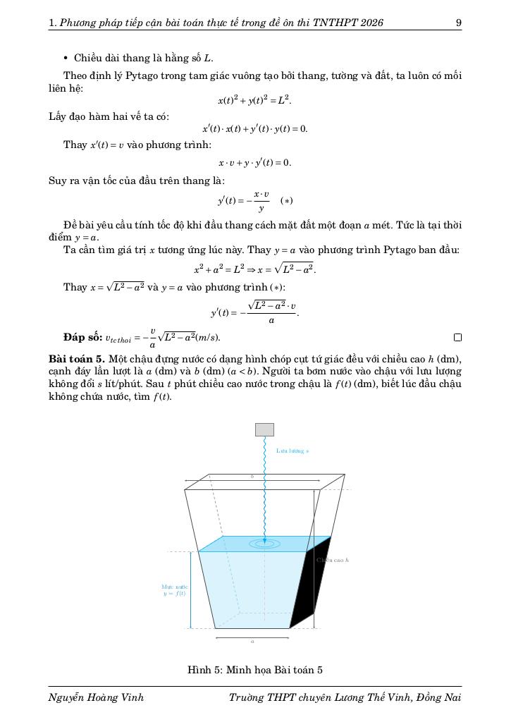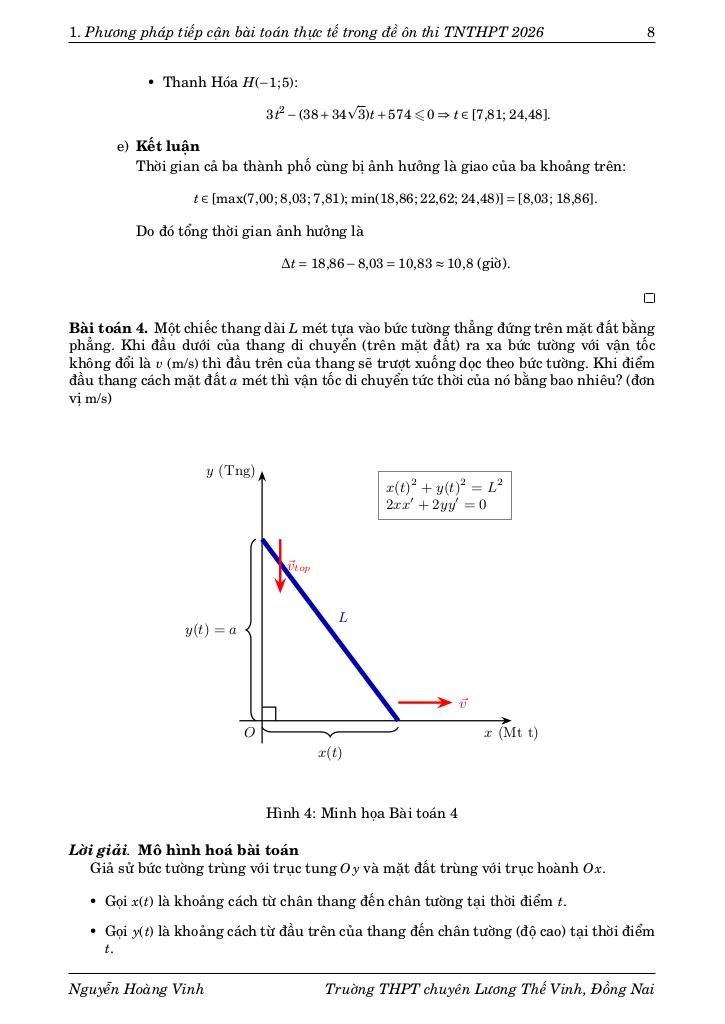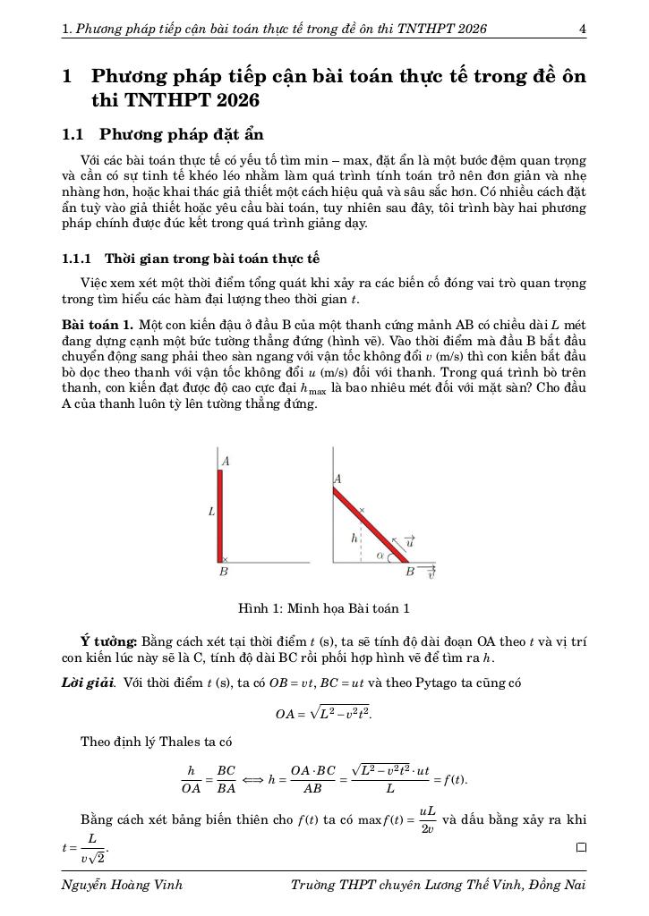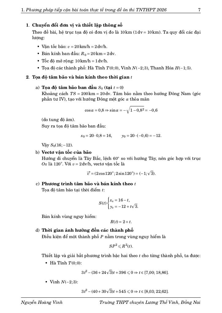Chuyên đề báo cáo “PHƯƠNG PHÁP TIẾP CẬN BÀI TOÁN THỰC TẾ TRONG ĐỀ ÔN THI THPTQG 2026 (tác giả Nguyễn Hoàng Vinh)” được xây dựng nhằm hệ thống hóa các công cụ tư duy cốt lõi để giải quyết lớp bài toán này. Thay vì tiếp cận theo từng dạng bài riêng lẻ, chuyên đề đi sâu vào bản chất của quá trình mô hình hóa thông qua hai trụ cột phương pháp luận chính: