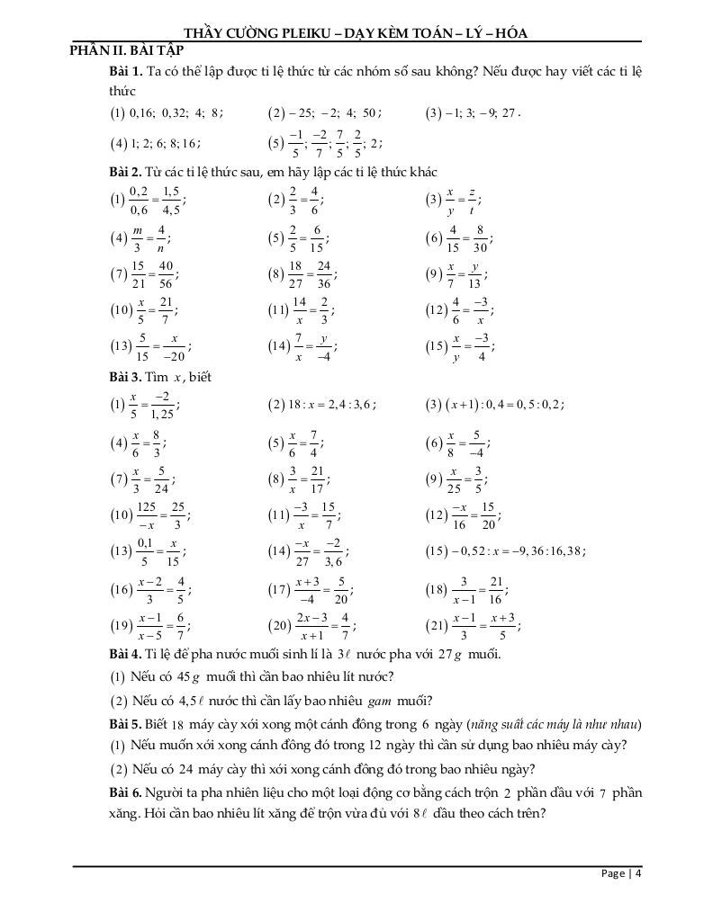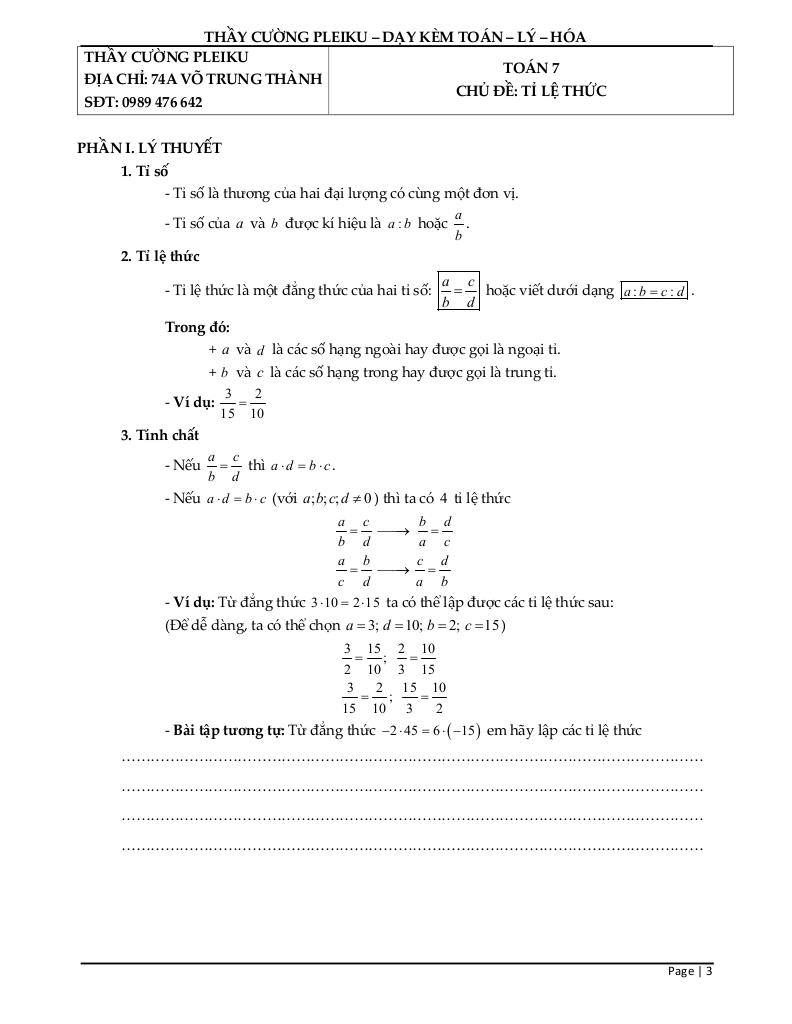 Chủ đề: Tỉ lệ thức.