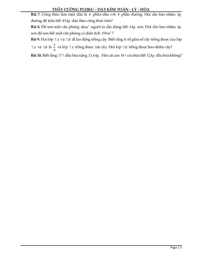 Chủ đề: Đại lượng tỉ lệ thuận.