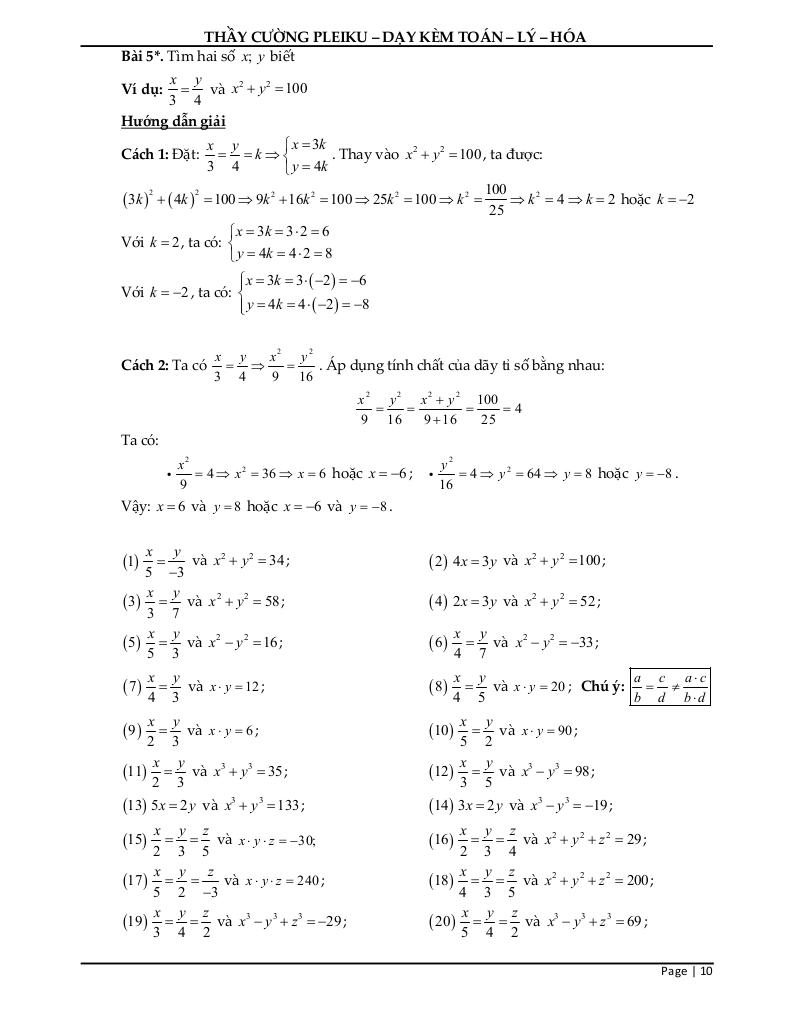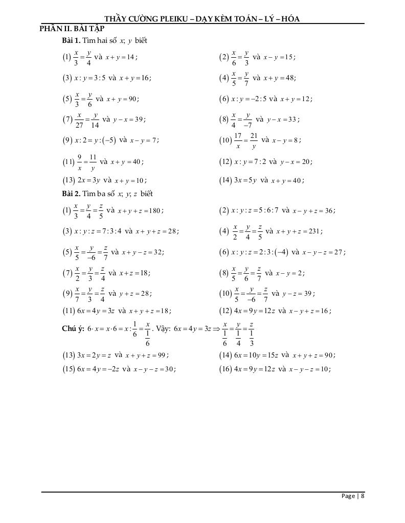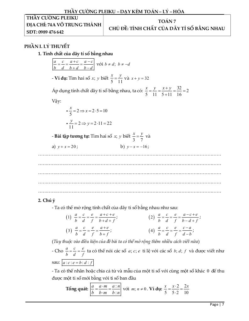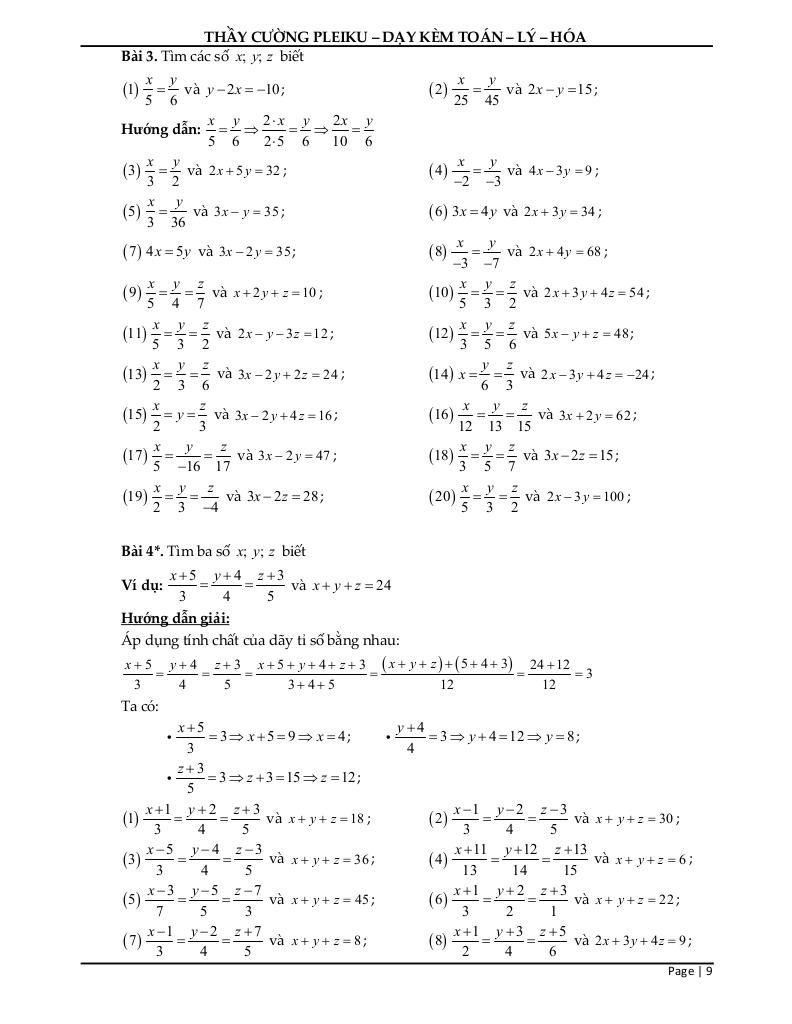 Chủ đề: Tính chất của dãy tỉ số bằng nhau.