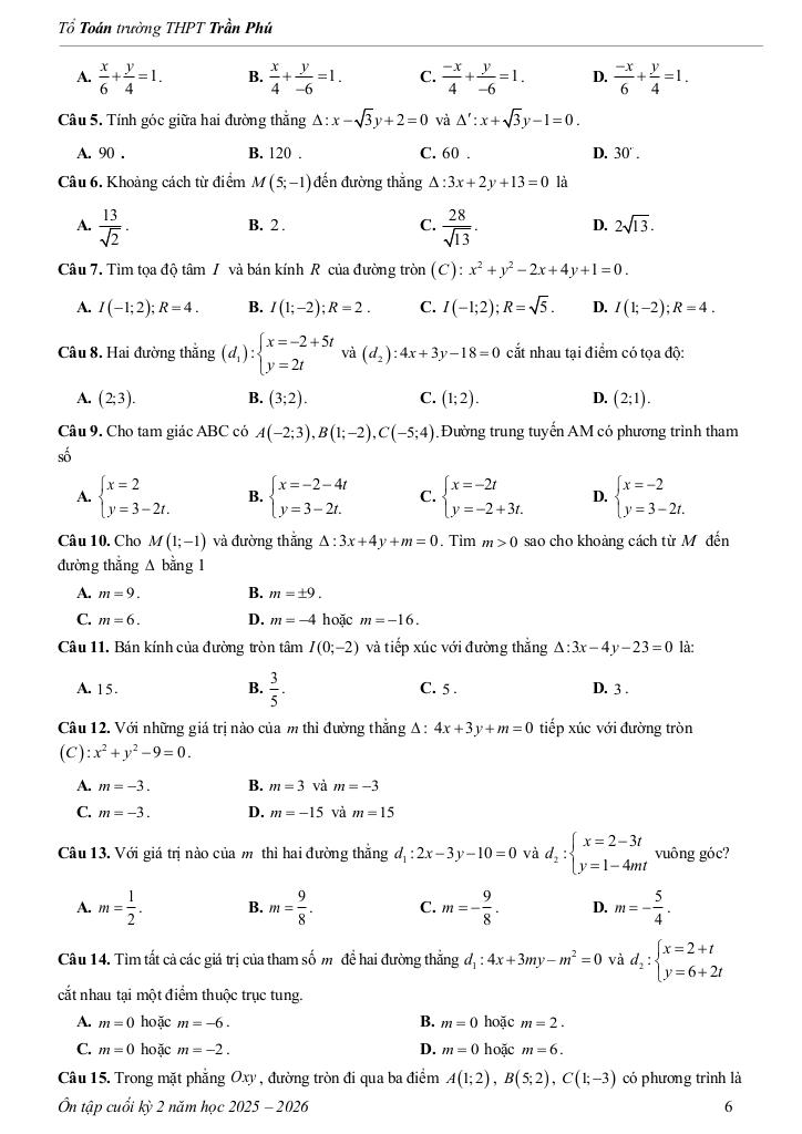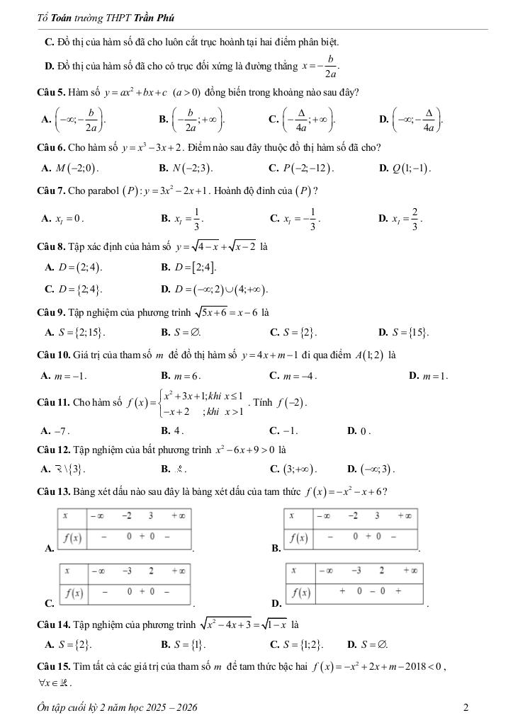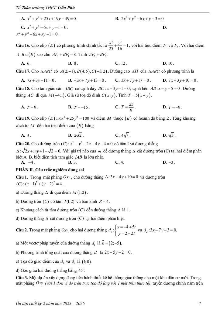 Toán học luôn là một môn học quan trọng, giúp học sinh phát triển tư duy logic và kỹ năng giải quyết vấn đề. Để hỗ trợ các bạn học sinh và giáo viên trong việc học tập và giảng dạy, bài viết này sẽ cung cấp lời giải chi tiết và đáp án chính xác cho chủ đề tài liệu ôn tập cuối kỳ 2 toán 10 năm 2025 – 2026 trường thpt trần phú – đà nẵng, giúp bạn hiểu sâu và tự tin hơn khi làm bài tập.