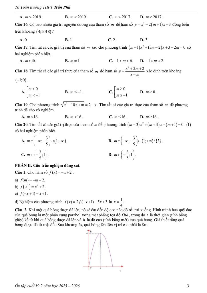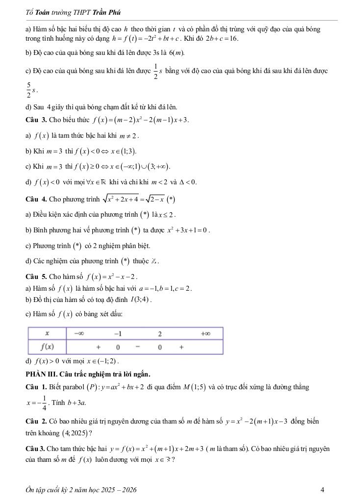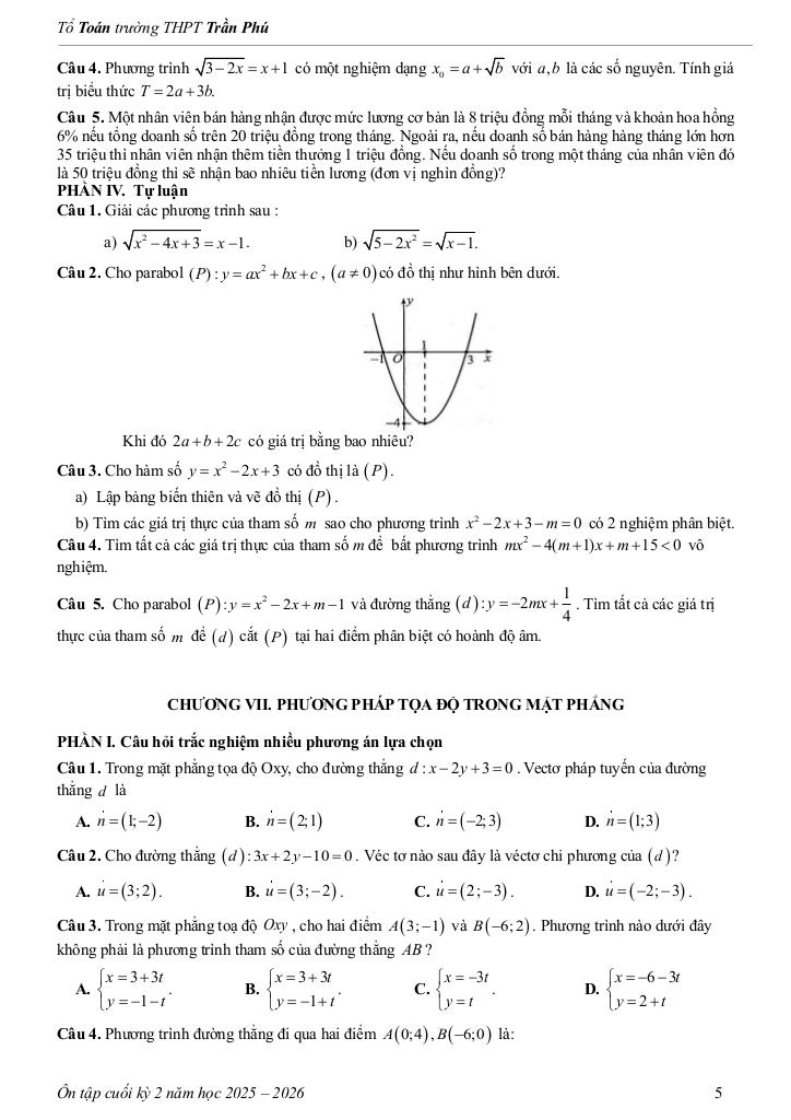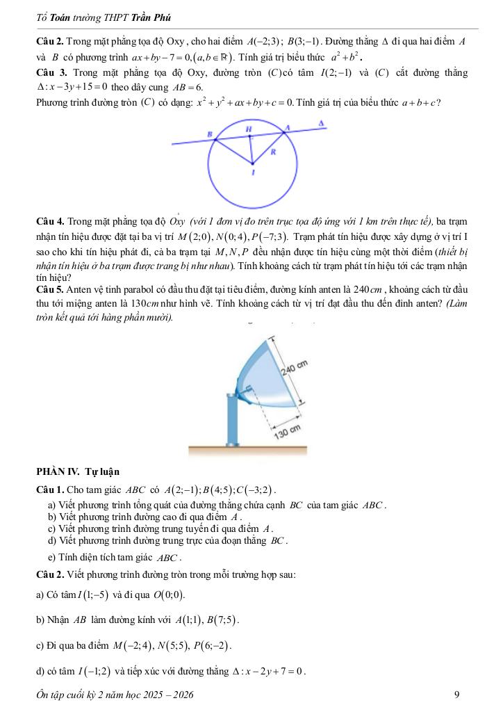 Giải Toán tài liệu ôn tập cuối kỳ 2 toán 10 năm 2025 – 2026 trường thpt trần phú – đà nẵng với Đáp Án Mới Nhất