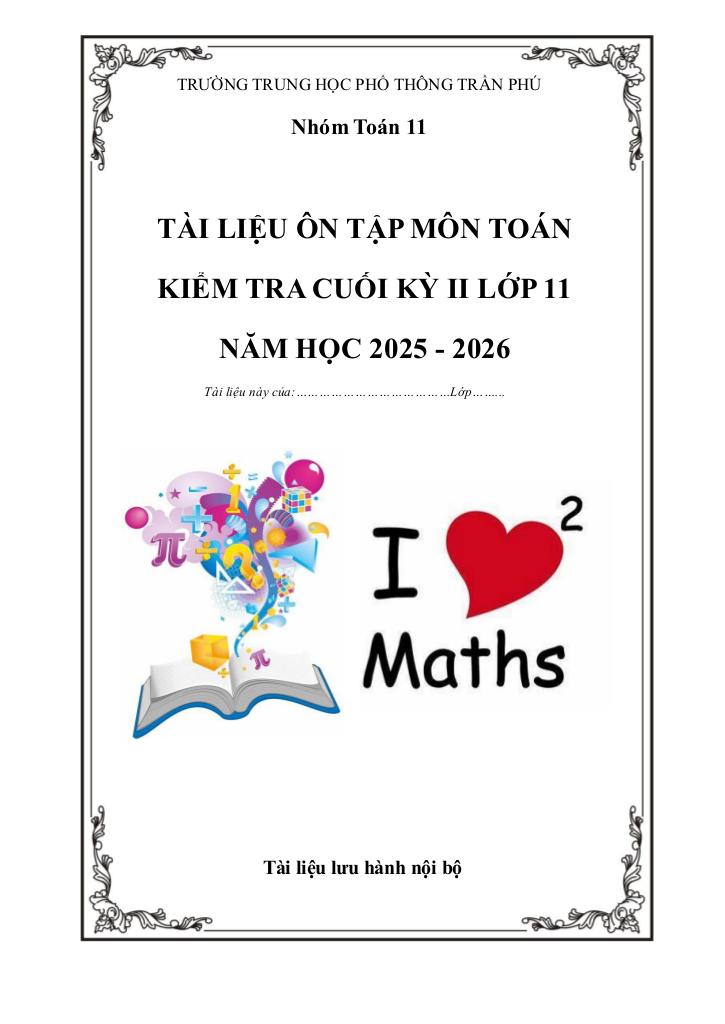 giaitoan.edu.vn giới thiệu đến quý thầy, cô giáo và các em học sinh tài liệu ôn tập cuối học kỳ 2 môn Toán 11 năm học 2025 – 2026 trường THPT Trần Phú, thành phố Đà Nẵng.