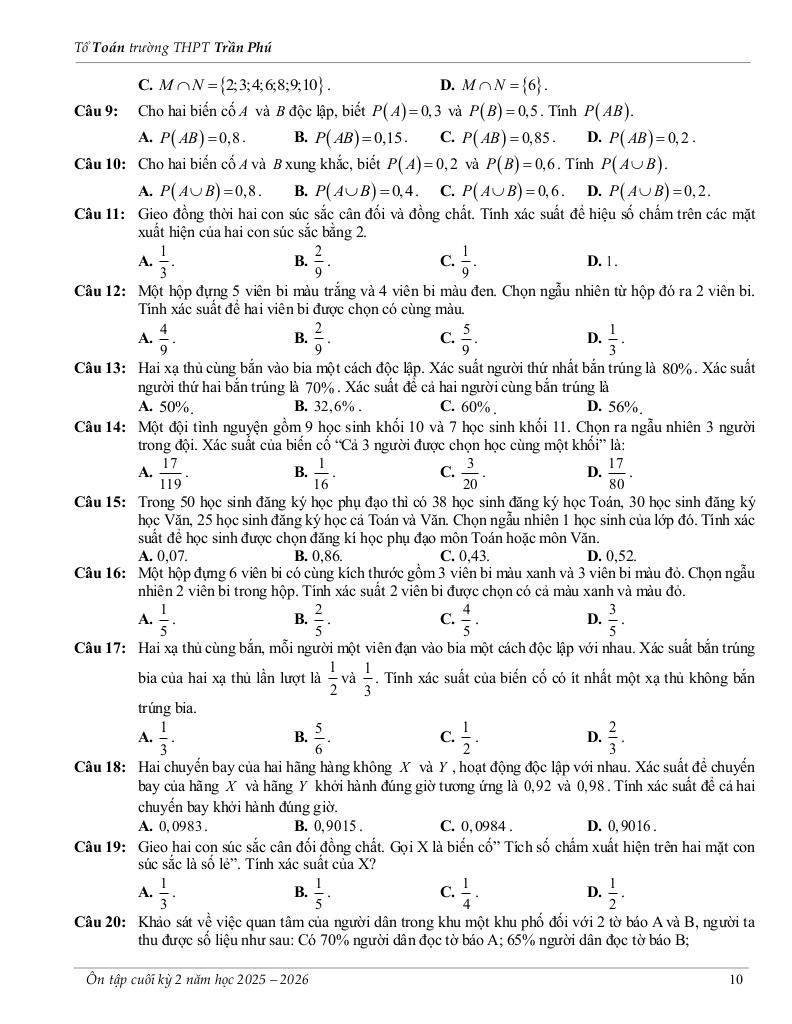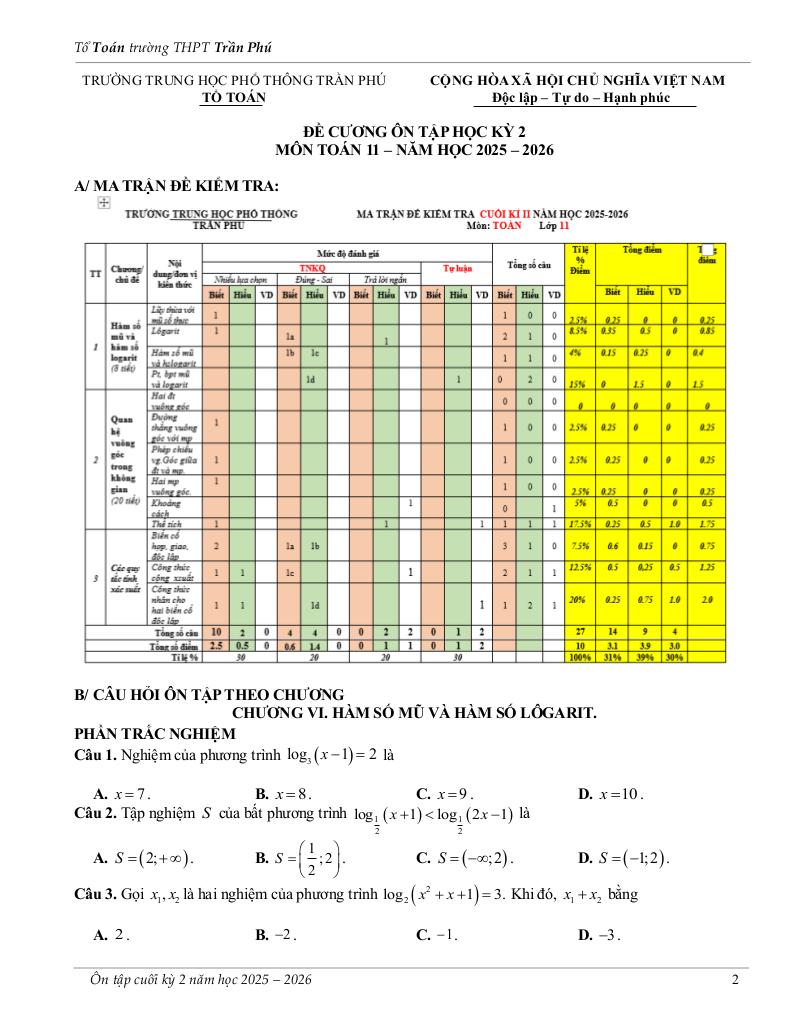 Toán học luôn là một môn học quan trọng, giúp học sinh phát triển tư duy logic và kỹ năng giải quyết vấn đề. Để hỗ trợ các bạn học sinh và giáo viên trong việc học tập và giảng dạy, bài viết này sẽ cung cấp lời giải chi tiết và đáp án chính xác cho chủ đề tài liệu ôn tập cuối kỳ 2 toán 11 năm 2025 – 2026 trường thpt trần phú – đà nẵng, giúp bạn hiểu sâu và tự tin hơn khi làm bài tập.