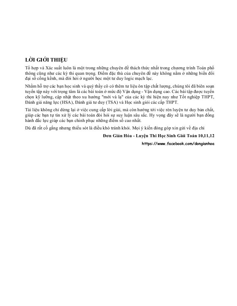 Dù đã rất cố gắng nhưng thiếu sót là điều khó tránh khỏi. Mọi ý kiến đóng góp xin gửi về địa chỉ: Đơn Giản Hóa – Luyện Thi Học Sinh Giỏi Toán 10-11-12.