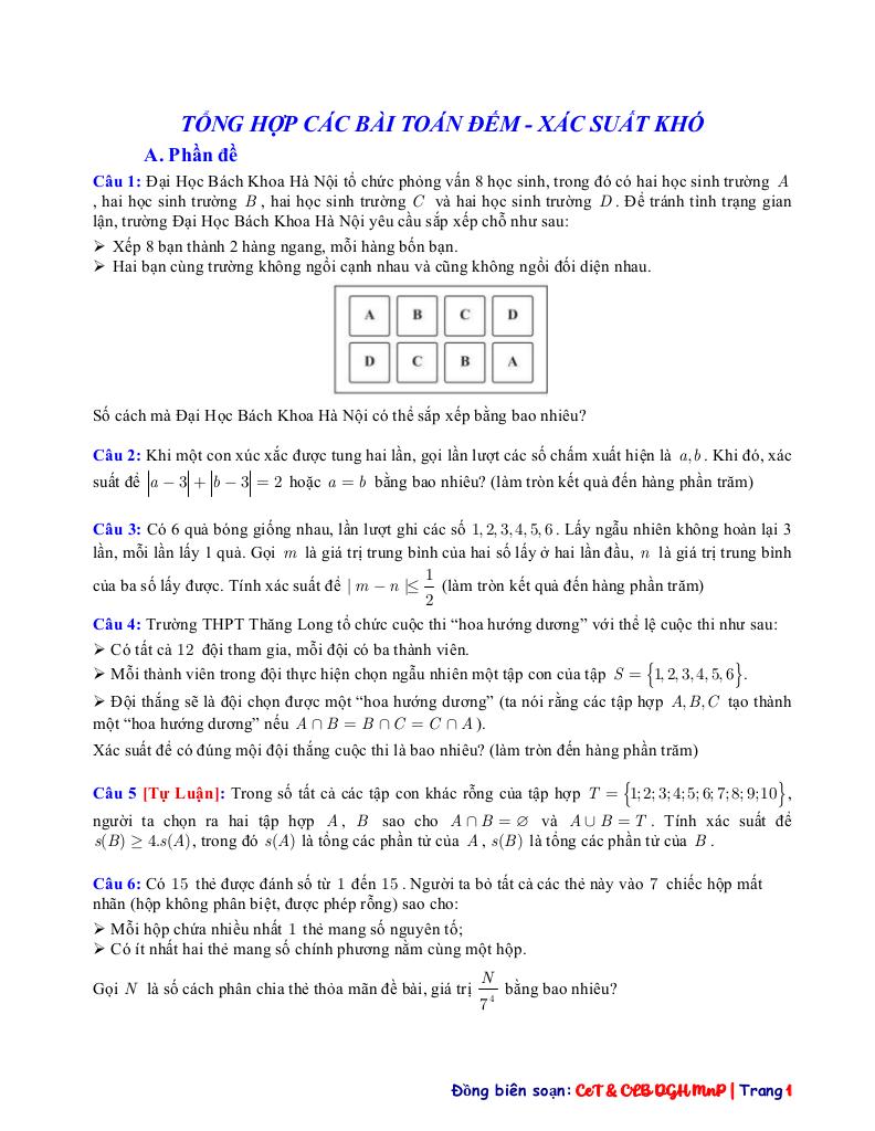 tổng hợp các bài toán đếm và xác suất vận dụng – vận dụng cao là một trong những phần kiến thức quan trọng trong chương trình toán học, thường xuất hiện trong các bài kiểm tra và kỳ thi lớn. Việc nắm vững phần này không chỉ giúp bạn đạt điểm cao mà còn tạo nền tảng vững chắc để học các nội dung nâng cao hơn.