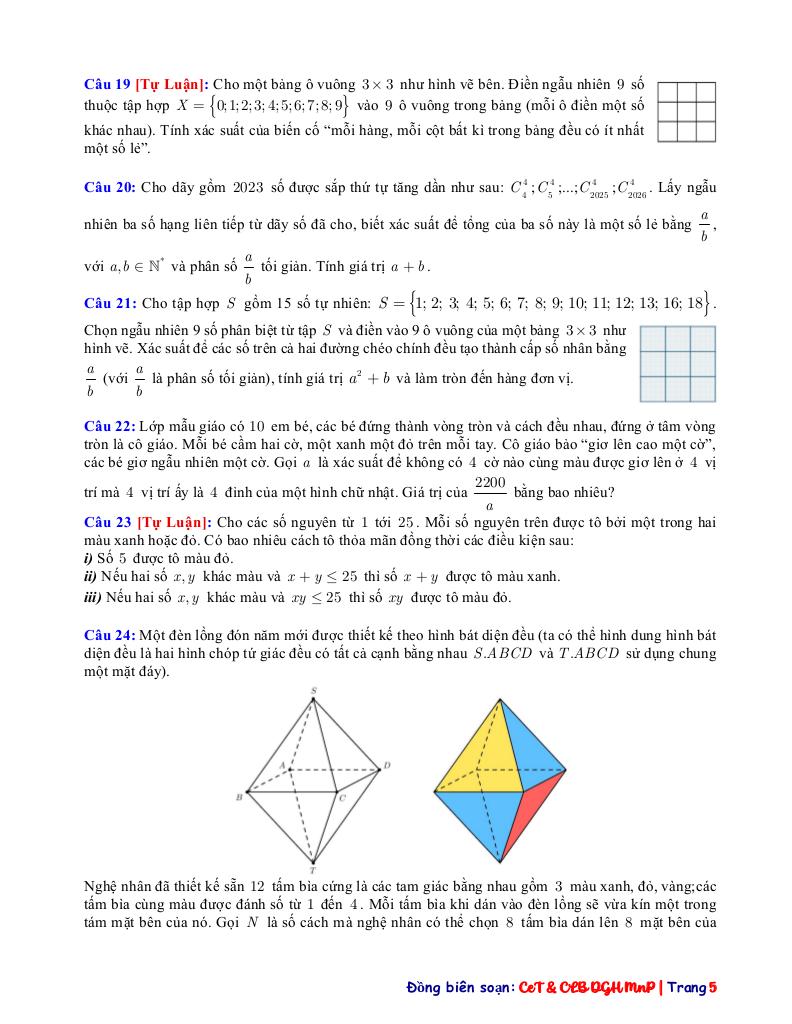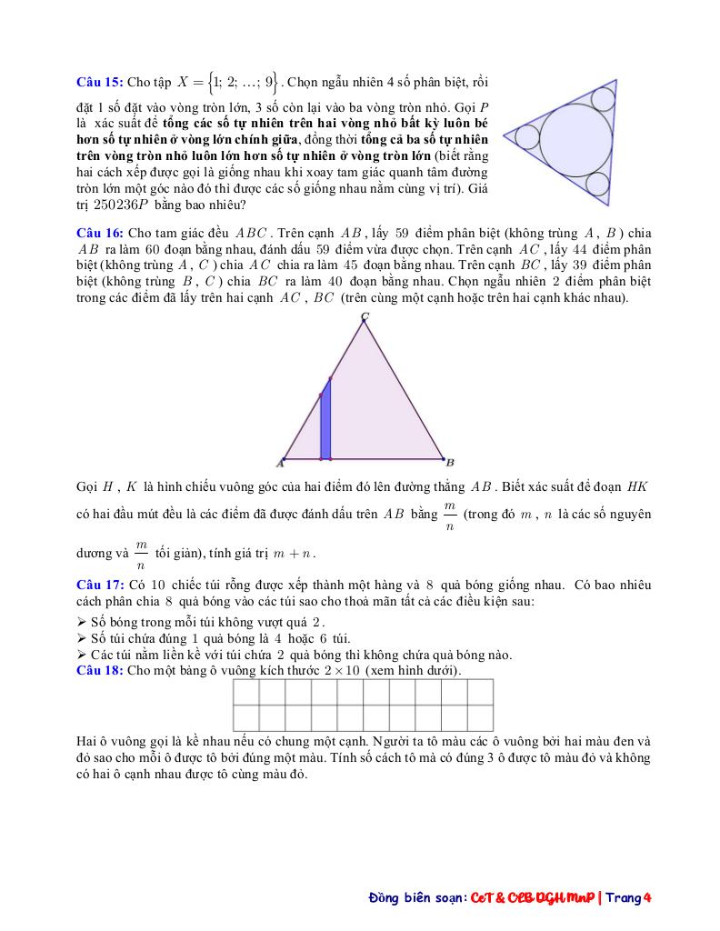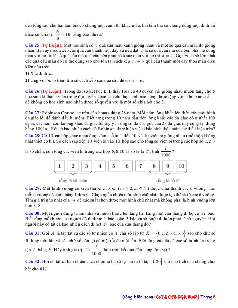 Toán học luôn là một môn học quan trọng, giúp học sinh phát triển tư duy logic và kỹ năng giải quyết vấn đề. Để hỗ trợ các bạn học sinh và giáo viên trong việc học tập và giảng dạy, bài viết này sẽ cung cấp lời giải chi tiết và đáp án chính xác cho chủ đề tổng hợp các bài toán đếm và xác suất vận dụng – vận dụng cao, giúp bạn hiểu sâu và tự tin hơn khi làm bài tập.